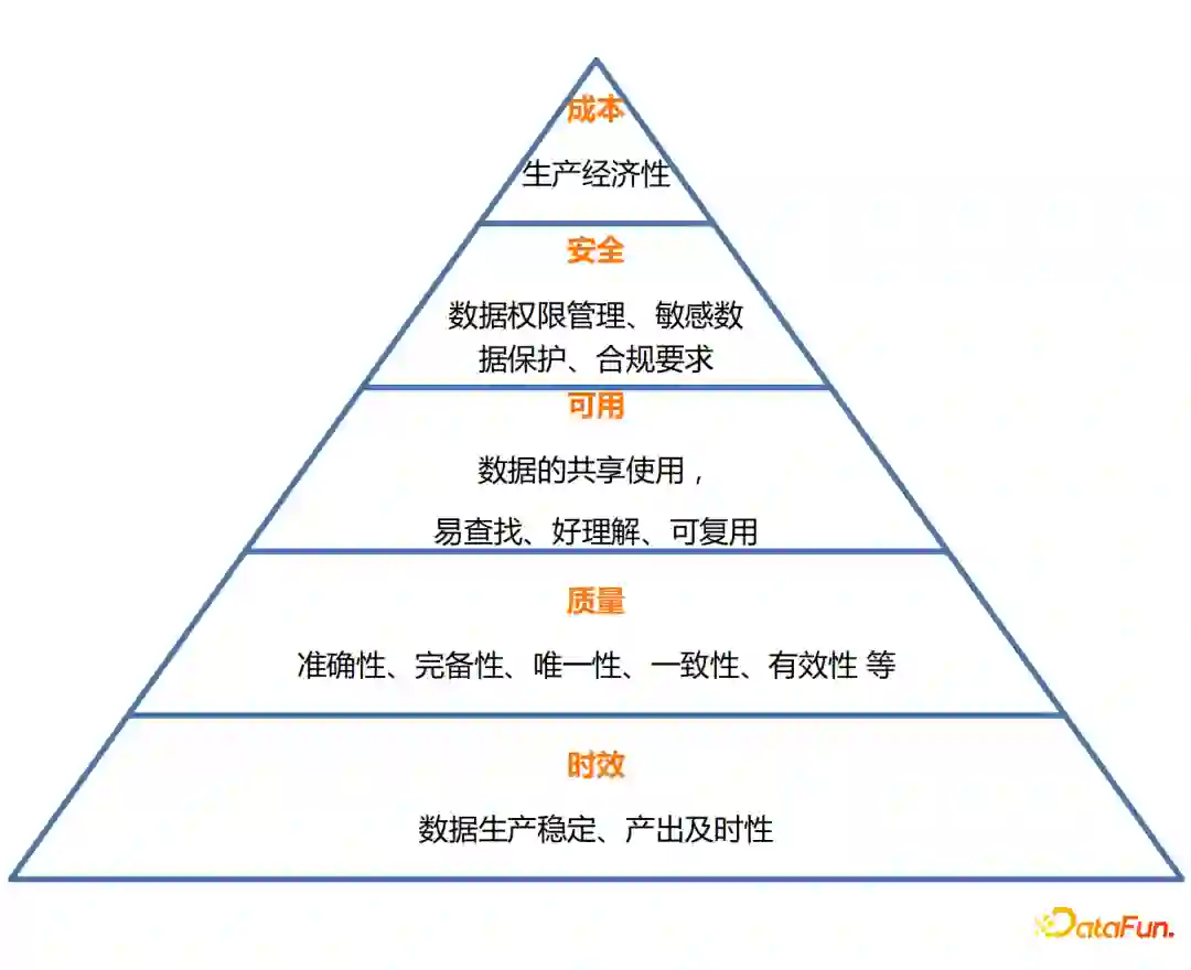 质量**:主要从数据自身属性和特点的角度,来衡量数据可靠的一些标准,包含了准确性、完备性、唯一性、一致性、有效性等。**