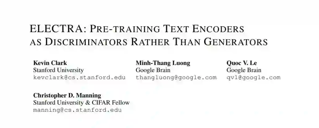 掩蔽语言建模(MLM)的预训练方法,如BERT,通过用[掩码]替换一些token来破坏输入,然后训练一个模型来重建原始token。虽然它们在迁移到下游的NLP任务时会产生良好的结果,但它们通常需要大量的计算才能有效。作为一种替代方案,我们提出了一种更具样本效率的预训练任务,称为替换token检测。我们的方法不是屏蔽输入,而是用从小型生成器网络中取样的可信替代方案替换一些令牌,从而破坏了输入。然后,我们不是训练一个模型来预测损坏的令牌的原始身份,而是训练一个判别模型来预测损坏的输入中的每个令牌是否被生成器样本替换。深入的实验表明,这种新的训练前任务比MLM更有效,因为该任务是在所有的输入标记上定义的,而不仅仅是被屏蔽的小子集。结果,在相同的模型大小、数据和计算条件下,通过我们的方法学习的上下文表示大大优于BERT学习的上下文表示。小型模型的收益尤其出色劲; 例如,我们在一个GPU上训练一个模型4天,该模型在GLUE自然语言理解基准上的性能优于GPT(使用30倍以上的计算进行训练)。我们的方法在规模上也运行良好,它的性能与RoBERTa和XLNet相当,但使用的计算不到它们的1/4,并且在使用相同数量的计算时性能优于它们。