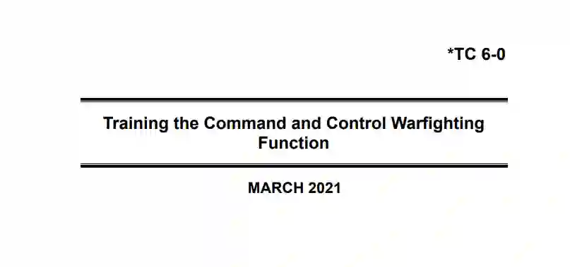 TC 6-0《指挥与控制作战职能训练》是营级到军团级指挥官的入门指南,用于将指挥与控制训练纳入单位训练管理中。本出版物为计划、准备、执行的指挥官、领导、士兵、军人和文职人员提供背景信息,并作为指挥与控制作战职能训练策略,取代2013-2019年任务指挥训练策略。该文件为后续计划的TC制定提供了背景(注--这些标题将在下次修订时更新,以反映指挥与控制作战职能,TC 6-6将重新编号为TC 6-0.6):