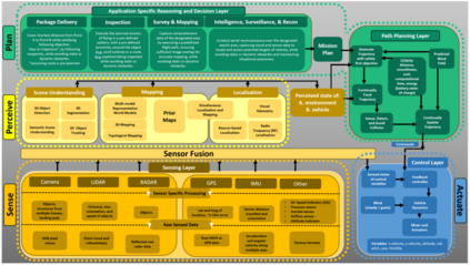自主系统框架的第四个也是最后一个功能块是执行。在空中自动控制的情况下,执行就是控制。在感知和理解环境后,飞行器需要进行相应的操作。这是通过控制算法实现的。这些算法根据动态感知的环境、车辆的空气动力学和当时的气象条件来决定车辆应如何移动。