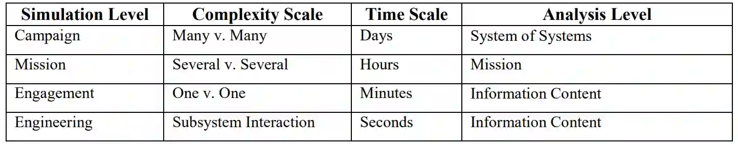表1. 我们建议的分析水平与建模和仿真界讨论的仿真水平一致。