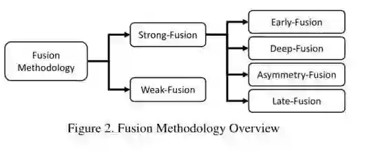 最新的融合任务为自主驾驶感知任务提出了一些创新的多模式融合方法。总的来说包括了两大类:即强融合和弱融合,以及强融合中的四个小类,即早期(前)融合、深度(特征)融合、后期(后)融合、不对称融合(这个表示两个分支的特征进行相互决策)