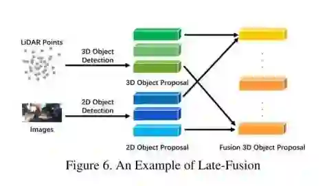 后融合,也称为目标对象级别融合,表示在每个模态中融合结果的方法。一些后融合方法其实是同时利用了LiDAR点云分支和相机图像分支的输出,并通过两种模式的结果进行最终预测。后期融合可以看作是一种利用多模态信息对最终方案进行优化的集成方法。 后融合