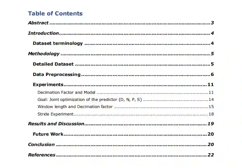 首先对整个数据集的数据进行了标准化。给定的数据有很大的时间间隔,其中没有样本,被称为 "死区",通过插值和零均值填充的过程人为地填补了这些空白。还创建了一个相对时间编码特征,以帮助预测者解释数据突发之间的时间量。分割是为了保持一个窗口的序列长度,同时增加它所代表的时间长度。