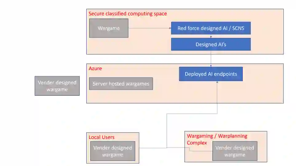 最近,机器学习和人工智能的快速发展为改进美国防部(DOD)兵棋推演创造了越来越多的机会。本研究旨在利用现代框架、算法和云硬件来提高美国防部的兵棋推演能力,具体重点是缩短训练时间、提高部署灵活性,并展示经过训练的神经网络如何为推荐行动提供一定程度的确定性。这项工作利用开源并行化框架来训练神经网络并将其部署到 Azure 云平台。为了衡量训练有素的网络选择行动的确定性,采用了贝叶斯变异推理技术。应用开源框架后,训练时间缩短了十倍以上,而性能却没有任何下降。此外,将训练好的模型部署到 Azure 云平台可有效缓解基础设施的限制,贝叶斯方法也成功提供了训练模型确定性的衡量标准。美国防部可以利用机器学习和云计算方面的这些进步,大大加强未来的兵棋推演工作。