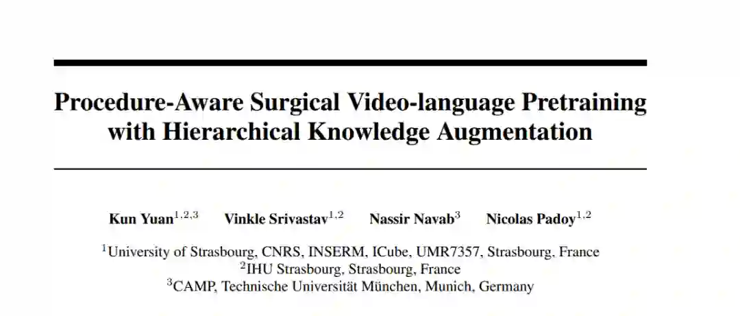 手术视频-语言预训练(VLP)由于知识领域的差异和多模态数据的稀缺,面临独特的挑战。本研究旨在通过解决手术讲解视频中的文本信息丢失问题,以及手术VLP的时空挑战,来缩小这一差距。我们提出了一种分层知识增强方法,并设计了一种新的流程编码的手术知识增强视频-语言预训练框架(PeskaVLP)来应对这些问题。知识增强使用大型语言模型(LLM)来优化和丰富手术概念,从而提供全面的语言监督,降低过拟合的风险。PeskaVLP将语言监督与视觉自监督相结合,构建难负样本,并采用基于动态时间规整(DTW)的损失函数,来有效理解跨模态的流程对齐。基于多个公开的手术场景理解和跨模态检索数据集的大量实验表明,我们提出的方法显著提高了零样本迁移性能,并为手术场景理解的进一步发展提供了通用的视觉表示。