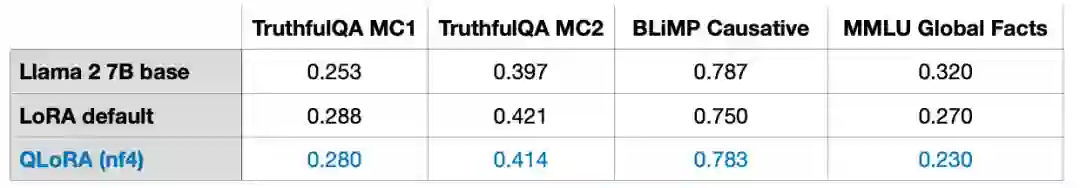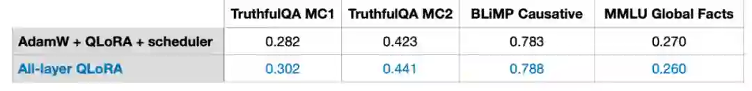 此外,我发现模型的性能几乎不受影响,这说明 QLoRA 可以作为 LoRA 训练的替代方案,更进一步解决常见 GPU 内存瓶颈问题。
