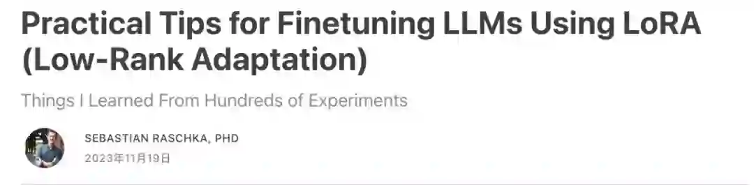 在保留作者原意的基础上,机器之心对这篇文章进行了编译: 上个月,我分享了一篇有关 LoRA 实验的文章,主要基于我和同事在 Lightning AI 共同维护的开源 Lit-GPT 库,讨论了我从实验中得出的主要经验和教训。此外,我还将解答一些与 LoRA 技术相关的常见问题。如果你对于微调定制化的大语言模型感兴趣,我希望这些见解能够帮助你快速起步。 简而言之,我在这篇文章中讨论的主要要点包含: