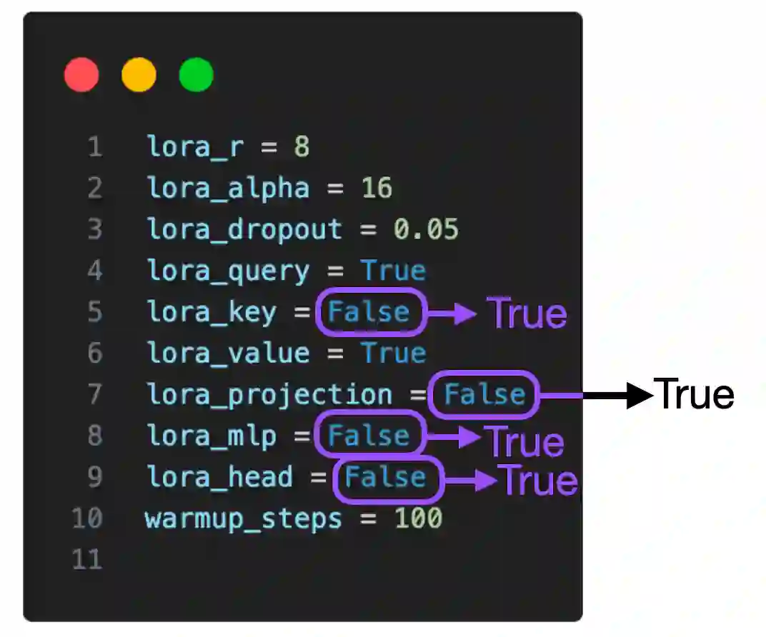 为了简单起见,在深度神经网络中我们通常将为每层设置相同的学习率。学习率是我们需要优化的超参数,更进一步,我们可以为每一层选择不同的学习率(在 PyTorch 中,这不是非常复杂的事)。 然而在实践中很少这样做,因为这种方法增加了额外的成本,并且在深度神经网络中还有很多其他参数可调。类似于为不同层选择不同的学习率,我们也可以为不同层选择不同的 LoRA r 值。我还没有动手尝试,但有一篇详细介绍这种方法的文献:《LLM Optimization: Layer-wise Optimal Rank Adaptation (LORA)》。理论上,这种方法听起来很有希望,为优化超参数提供了大量的拓展空间。 论文链接:https://medium.com/@tom_21755/llm-optimization-layer-wise-optimal-rank-adaptation-lora-1444dfbc8e6a 原文链接:https://magazine.sebastianraschka.com/p/practical-tips-for-finetuning-llms?continueFlag=0c2e38ff6893fba31f1492d815bf928b