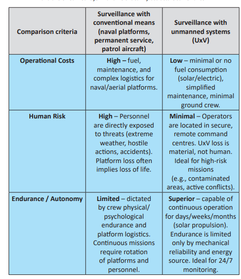 本文旨在通过识别无人系统在使用中的优势、局限性和挑战,明确其在位于黑海沿岸附近及沿岸的关键海事基础设施的军事监视中的作用。随着陆上通信路线的扩展,世界各大洋和海域已成为国际贸易的生命线,这使得海上安全面临挑战,海上领域也因此确立了其作为经济核心支柱的地位。由于对海洋环境的这种关键依赖性,“关键海事基础设施”的概念应运而生,这是一个由重要的强制性交通枢纽、海上交通线、海上能源平台、港口与码头、天然气与石油管道以及海底通信电缆骨干网络组成的复杂生态系统。这一通信路线在过去十年受到越来越多的关注,因此,本研究基于“超过98%的国际数据流量通过海底电缆传输”这一前提,旨在寻求海军能力解决方案,以通过保护海事基础设施来为海上安全做出贡献,这些基础设施与天然气和石油管道一样,都可能成为关键设施。