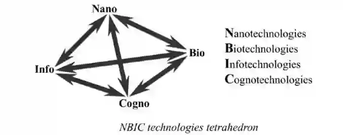 NBIC是一个科学项目,汇集了四个以往不同的领域:纳米技术(纳米机器人技术、纳米传感器、纳米结构、能源...)、生物技术(生物基因组技术、CRISPR-Cas9、神经药理学...)、信息技术(计算机科学、微电子...)和认知技术(认知科学和神经心理学)。在美国国防部的鼓励下,该项目于2002年正式成立,随后被主要国际机构和一些国家采纳,以汇集未来的技术。