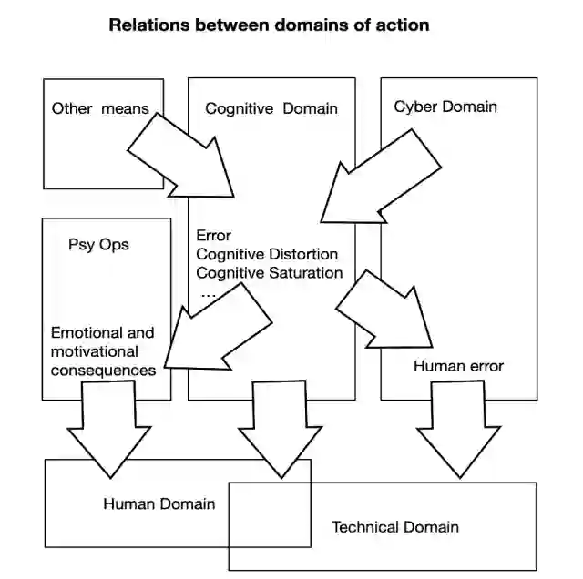 认知层面既基于对相关参与者心理的了解,也基于对特定人群或群体的社会心理学的了解,以及文化对不同参与者的决策和理性的影响。第二个层面更具体地与认知的各个领域相关,例如包括决策/非决策二分法、认知错误和偏见、感知和幻觉、控制论和控制的缺失或丧失、影响力和软实力、心理学和网络心理学、用户和系统之间的互动、机器人和无人机、自主权和与新技术相关的伦理、 动机及其丧失(放弃和绝望),道德和价值观的冲突,心理学和宗教,在创伤后护理或有人断气后精神支持的紧迫性,网络安全和人类的可靠性,以及指挥和控制(C2)的认知方面,涉及相当多的其他考虑,包括多领域和多文化方面。