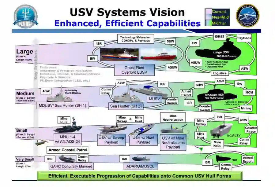相较于投入巨资改造问题重重的CSC,RCN应通过国家造船战略(NSS)投资本土建造计划——部署由35艘大/中型无人水面艇(USV)组成的舰队。USV可分布式增加战场武器与传感器总量,从而提供机动自由权、未来海战优势及与北约/美国盟友的互操作性。作为更具成本效益的平台,USV能承担传统RCN职能(如主权巡逻、执法支援及其他政府协同行动)。全球USV市场正迅猛增长,预计2040年规模将达650亿美元/年。USV技术蕴含独特的商业-军事双重机遇,NSS可借此快速推进核心目标:在加拿大构建稳定自足的海事产业,同时以可承受成本生成RCN所需作战能力。