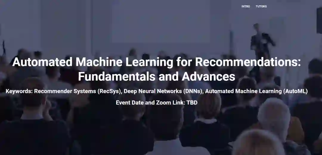 在本教程中,我们将全面介绍高级自动机器学习(AutoML)技术在深度推荐系统中解决上述问题的最新进展。希望相关领域的学术研究者和行业从业者能够对空间有深刻的理解和准确的洞察,激发更多的想法和讨论,并在推荐中推动技术的发展