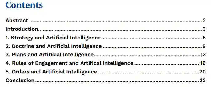 人工智能(AI)有可能影响所有领域和大规模的军事行动。本章探讨了人工智能系统如何影响准备和开展军事行动的主要工具,以及如何受其影响。本章分析和讨论了人工智能在战略、条令、规划、交战规则和命令方面的多层次影响。采取了一个广泛的分析角度,能够根据新的政策和技术发展,以及对政治、军事、法律和道德观点的考虑,对这个问题进行总体审查。因此,本章确定了机遇、挑战和开放性问题,并提出了总体性的意见。提供了洞察力和途径,以推进对人工智能在军事行动中的适当整合、管理和使用的进一步思考、研究和决策。