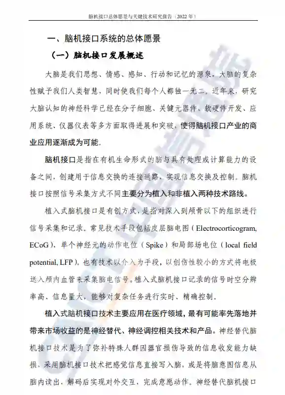 近日,中国信通院正式发布《脑机接口总体愿景与关键技术研究报告(2022年)》,针对脑机接口这一前沿领域,全球首次从愿景、需求、场景、技术、系统衡量指标几个维度开展研究,对该领域的科研攻关、产品研制和政策研究具有参考价值。
