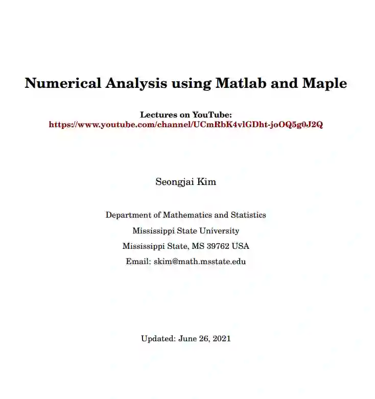 640页《利用Maple和Matlab进行数值分析》,密西西比大学Seongjai Kim教授最新讲义