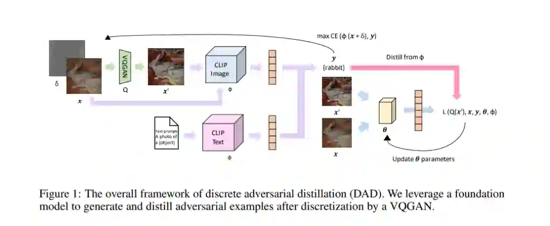 我们提出了一个概念上简单且轻量级的框架,通过结合知识蒸馏和数据增强来提高视觉模型的鲁棒性。我们解决了更大模型并不意味着更好的教师这一猜想,通过展示从预训练基础模型进行蒸馏时对于分布外鲁棒性的显著增益。基于这一发现,我们提出了离散对抗蒸馏 (DAD),它利用一个鲁棒的教师生成对抗样本,并使用VQGAN对它们进行离散化,从而创造出比标准数据增强技术更有信息量的样本。我们为在知识蒸馏与数据增强环境下使用鲁棒教师提供了一个理论框架,并展示了在不同学生架构上对于分布外鲁棒性和干净准确性的显著增益。值得注意的是,与类似技术相比,我们的方法只增加了微小的计算开销,并且可以轻松地与其他数据增强结合以进一步提高效果。