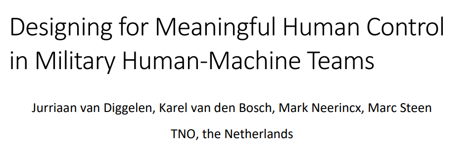 本章从军事人机协同(HMT)的角度出发,提出了分析、设计和评估国防技术的有意义人机控制(MHC)的方法。方法基于三个原则。首先,MHC 应被视为指导分析、设计和评估所有阶段的核心目标。其次,MHC 影响社会技术系统的所有部分,包括人类、机器、人工智能、交互和环境。最后,移动健康中心应被视为一种跨越较长时期的属性,既包括事先控制,也包括多方参与者的实时控制。为了描述实现 MHC 的宏观设计方案,我们提出了各种团队设计模式。此外,还介绍了一个案例研究,在该案例研究中,将其中一些方法应用于设想 HMT,让机器人和士兵参与到军事背景下的搜救任务中。