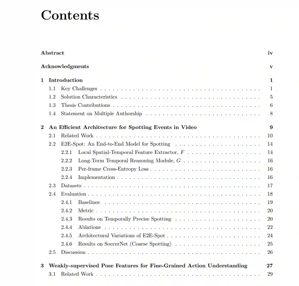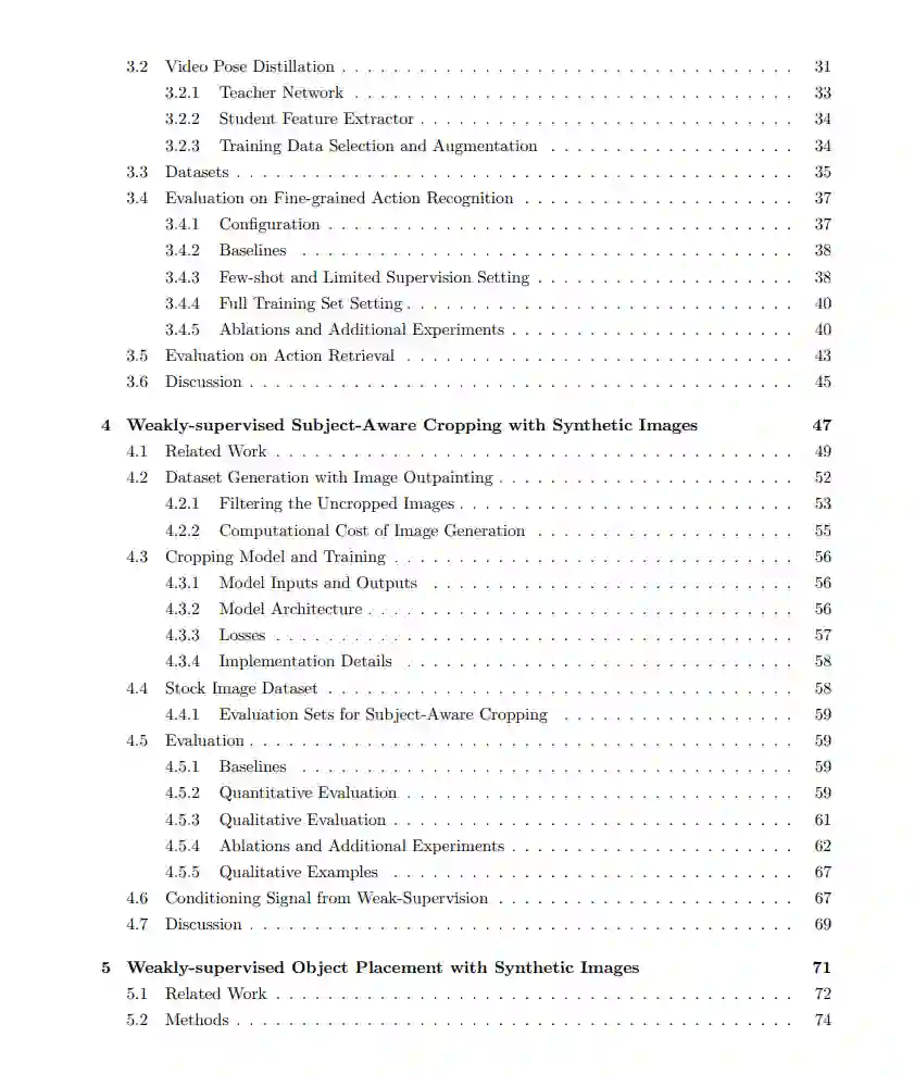 近年来,大规模的图像和视频数据集以及现代机器学习技术推动了计算机视觉的显著进展。然而,将计算机视觉应用于现实世界问题仍然是一个挑战。其中一个难点在于需要理解图像和视频的细粒度细节(例如视频中事件发生的精确时刻、体育运动中的技术动作或平衡良好的摄影构图概念)。 本论文通过四个示例任务研究细粒度的图像和视频分析:(1)高时间精度定位事件(即时间精确检测),(2)识别细粒度动作(例如网球、体操或滑冰等活动中的动作),(3)学习裁剪美观的图像,以及(4)将物体放置在场景中。这些任务需要在时间、空间、类别和图像美学方面进行细粒度的理解和预测。虽然这些任务在概念上与广泛研究的计算机视觉问题有许多相似之处,但在实践中它们由于问题的难度和微妙性而提出了新的独特挑战。为了很好地执行这些任务,模型需要稳健地提取信息并精确地推理关于高度特定的图像和视频分布。通常,训练时可用的标签非常有限,而新的真实标签和数据获取成本高昂——无论是在人工劳动还是领域专业知识方面。 为了解决这些挑战,我们提出了一系列弱监督方法来完成这些任务。我们的方法包括在大量未标注的域内数据上进行训练,使用自动生成的终端任务(或接近终端任务)标签和监督,以及高效的视频模型架构以使优化变得可行。尽管仅在稀疏、少量、不完整或没有真实标签的条件下进行训练,我们仍然实现了与更强监督方法相竞争的最新性能。我们分析并讨论了我们的方法、其局限性以及我们工作的广泛影响,特别是对于细粒度图像和视频理解任务在计算机视觉领域的意义。 大规模的图像和视频数据、预训练技术以及强大的视觉模型推动了在图像识别、目标检测、视频分类等难题上快速进展。然而,将计算机视觉应用于许多现实世界问题仍然具有挑战性。 以检测网球运动员击球的精确时刻或花样滑冰选手或体操运动员起跳或落地的瞬间为例(图1.1)。这些动作对于解析体育视频中的技术动作至关重要,但它们细微而短暂。许多动作发生在一瞬间,集中在画面的一个小区域(即球拍或运动员)。要有效检测这些事件,时间公差需要精确到单帧。虽然许多先前的工作研究了视频中动作的时间检测,但它们采用的是更粗糙的时间尺度(例如,几十秒的间隔和几十到几百帧的公差)和语义粒度(例如,网球或高尔夫等一般活动与网球中的具体动作)。因此,这些先前的方法在用于细粒度和严格的事件检测时表现不佳。 总体而言,我研究了四个细粒度问题实例,两个在视频上,两个在图像上。这些任务包括(1)高时间精度定位事件(即时间精确检测),(2)识别细粒度动作(例如网球、体操或滑冰中的动作),(3)学习裁剪美观的图像,以及(4)将物体放置在场景中。这些任务基于实际应用,但也提出了现有文献未能充分解决的共同挑战。