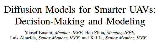 扩散模型(DM)是一类生成式人工智能,在应对上述挑战方面显示出巨大的潜力。与注重类别边界的传统方法不同,DMs 从训练数据中学习底层概率分布,从而能够根据学习到的分布生成值得信赖的新样本。DM 可以综合数据,帮助 RL 模型克服样本效率低的问题,改进其策略以更好地处理无人机动态环境,并为无人机训练创建逼真的模拟环境。此外,DM 还能帮助 DT 辅助无人机克服数据稀缺的问题,在与 RL 集成时改进决策制定,并提高无人机建模的准确性。Sun 等人展示了如何使用生成式人工智能来增强 RL。此外,Zhu 等人调查了 DM 在 RL 中的应用,Sun 等人系统地展示了生成式人工智能在优化无人机通信和网络问题中的应用。