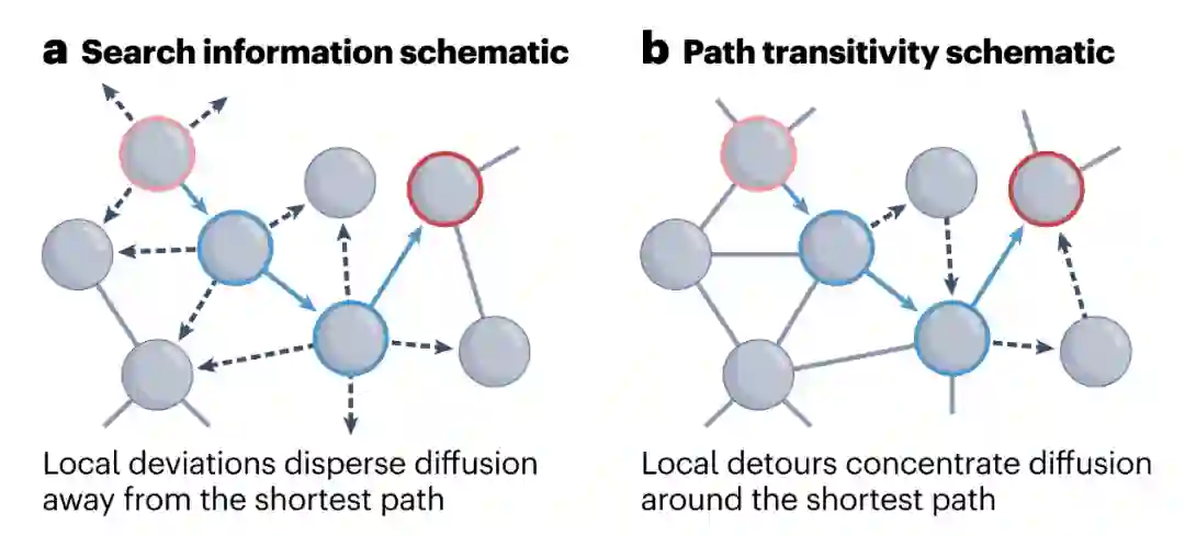 Finger, H., Gast, R., Gerlof, C., Engel, A. K. & König, P. Probing neural networks for dynamic switches of communication pathways. PLOS Comput. Biol. 15, e1007551 (2019). 1. Pope, M., Seguin, C., Varley, T. F., Faskowitz, J. & Sporns, O. Co-evolving dynamics and topology in a coupled oscillator model of resting brain function. Preprint at bioRxivhttps://doi.org/10.1101/2023.01.31.526514 (2023). 1. Osmanlıoğlu, Y. et al. System-level matching of structural and functional connectomes in the human brain. Neuroimage 199, 93–104 (2019). 1. Seguin, C., Razi, A. & Zalesky, A. Inferring neural signalling directionality from undirected structural connectomes. Nat. Commun. 10, 4289 (2019). 1. Vázquez-Rodríguez, B. et al. Gradients of structure–function tethering across neocortex. Proc. Natl Acad. Sci. USA 116, 21219–21227 (2019). 1. Tewarie, P. et al. Predicting time‐resolved electrophysiological brain networks from structural eigenmodes. Hum. Brain Mapp. 43, 4475–4491 (2022). 1. Nakuci, J., McGuire, M., Schweser, F., Poulsen, D. & Muldoon, S. F. Diferential patterns of change in brain connectivity resulting from severe traumatic brain injury. Brain Connect.12, 799–811 (2022). 1. Li, Y. et al. Difusion tensor imaging based network analysis detects alterations of neuroconnectivity in patients with clinically early relapsing-remitting multiple sclerosis. Hum. Brain Mapp. 34, 3376–3391 (2013). 1. Crofts, J. J. et al. Network analysis detects changes in the contralesional hemisphere following stroke. NeuroImage 54, 161–169 (2011). 1. Andreotti, J. et al. Validation of network communicability metrics for the analysis of brain structural networks. PLoS One 9, e115503 (2014). 1. Latora, V. & Marchiori, M. Eficient behavior of small-world networks. Phys. Rev. Lett. 87, 198701 (2001). 1. Muscoloni, A., Thomas, J. M., Ciucci, S., Bianconi, G. & Cannistraci, C. V. Machine learning meets complex networks via coalescent embedding in the hyperbolic space. Nat. Commun. 8, 1615 (2017). 1. Rosvall, M., Grönlund, A., Minnhagen, P. & Sneppen, K. Searchability of networks. Phys. Rev. E Stat. Nonlin. Soft Matter Phys. 72, 046117 (2005). This paper first proposed the concept of search information and applied it to complex networks.