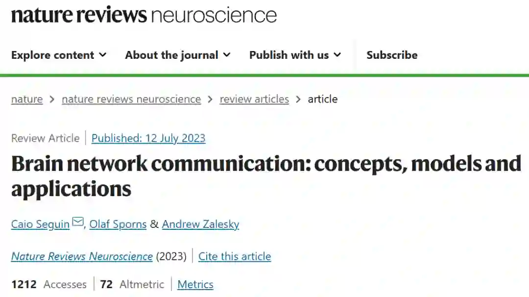 研究领域:复杂脑网络,脑网络通信,连接组学,网络神经科学****************** Caio Seguin, Olaf Sporns & Andrew Zalesky | 作者