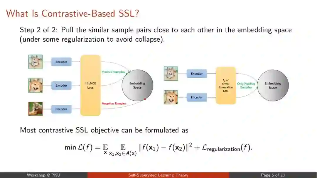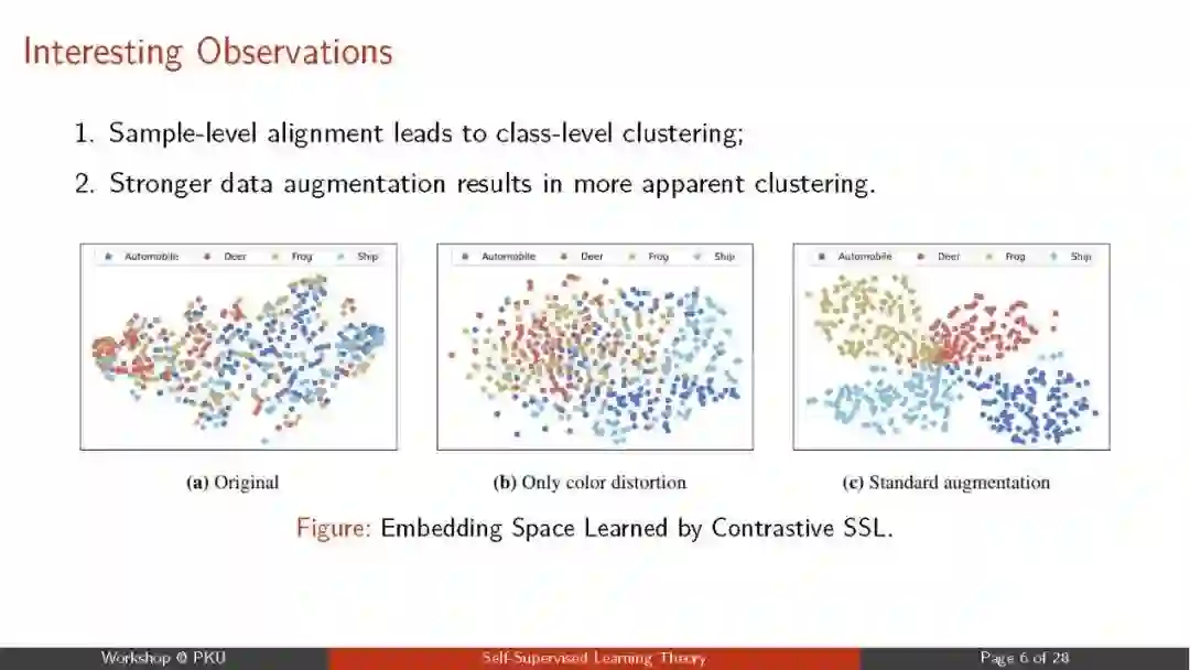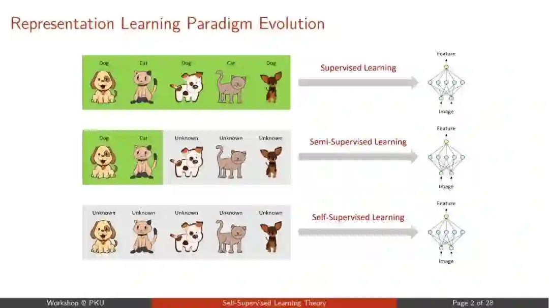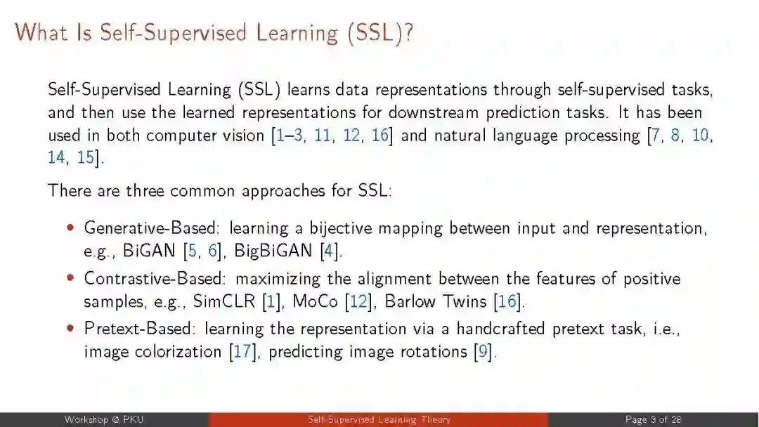 华为诺亚方舟实验室的黄维然向大家介绍了自监督学习的前沿研究。首先,他对自监督学习的概念和分类进行了介绍,并以几个简单的例子带大家探索了基于生成、对比和前置任务等不同方法的模型构建与数学推演。在分享的最后,他引用图灵奖得主杨立昆与本吉奥的话,向大家展示了自监督学习的广阔前景。
