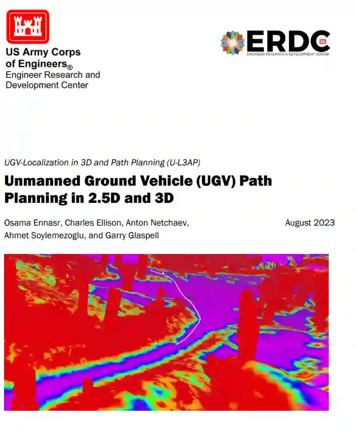 本报告涉及《陆军多域情报: 21-22 财年科技重点领域》(参谋部副参谋长办公室,2020 年)。具体而言,在传感器部分,本报告与以下需求相关: "传感器和机器人平台的新组合,不仅能在地形上移动,还能机动感知"(4)。传统上,无人地面车辆(UGV)以二维方式导航,并将世界划分为已知、未知和障碍。本报告试图通过在地图中加入实际地表信息,将导航扩展到 2.5维和 3维尺寸。更高的维度可以提高导航效率。