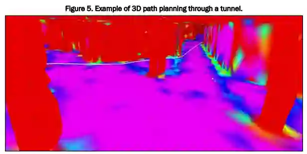 此外,如图 5 所示,网格可以沿同一 Z 轴存在多个点。这也是 2D 或 2.5D 方法无法实现的。图 5 还表明,mesh_navigation 软件包可以有效地利用三维网格来规划隧道路径,以达到预定目标。