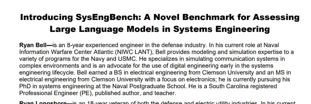 在飞速发展的人工智能(AI)领域,大型语言模型(LLM)在理解和生成自然语言方面展现出了前所未有的能力。然而,它们在专业领域的能力,尤其是在复杂和跨学科的系统工程领域的能力,仍然较少被探索。本文介绍了 SysEngBench,这是一个新颖的基准,专门用于在系统工程概念和应用的背景下评估大型语言模型。SysEngBench 将包含一整套源自核心系统工程流程的任务,包括需求分析、系统架构设计、风险管理和利益相关者沟通。SysEngBench 利用各种真实世界和合成生成的场景,旨在评估大型语言模型解释复杂工程问题和生成创新解决方案的能力。