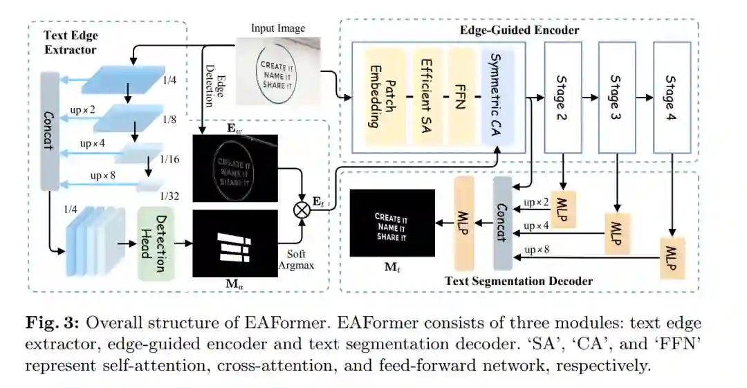 场景文本分割旨在从场景图像中裁剪文本,通常用于帮助生成模型编辑或删除文本。现有的文本分割方法往往涉及各种与文本相关的监督以提高性能。然而,大多数方法忽略了文本边缘的重要性,而文本边缘对下游应用具有重要意义。本文提出了边缘感知Transformer(EAFormer),以更精确地分割文本,特别是文本边缘。