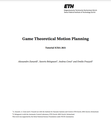 【part 1】 Tutorial ICRA 2021——“Game Theoretical Motion Planning”(47页pdf)