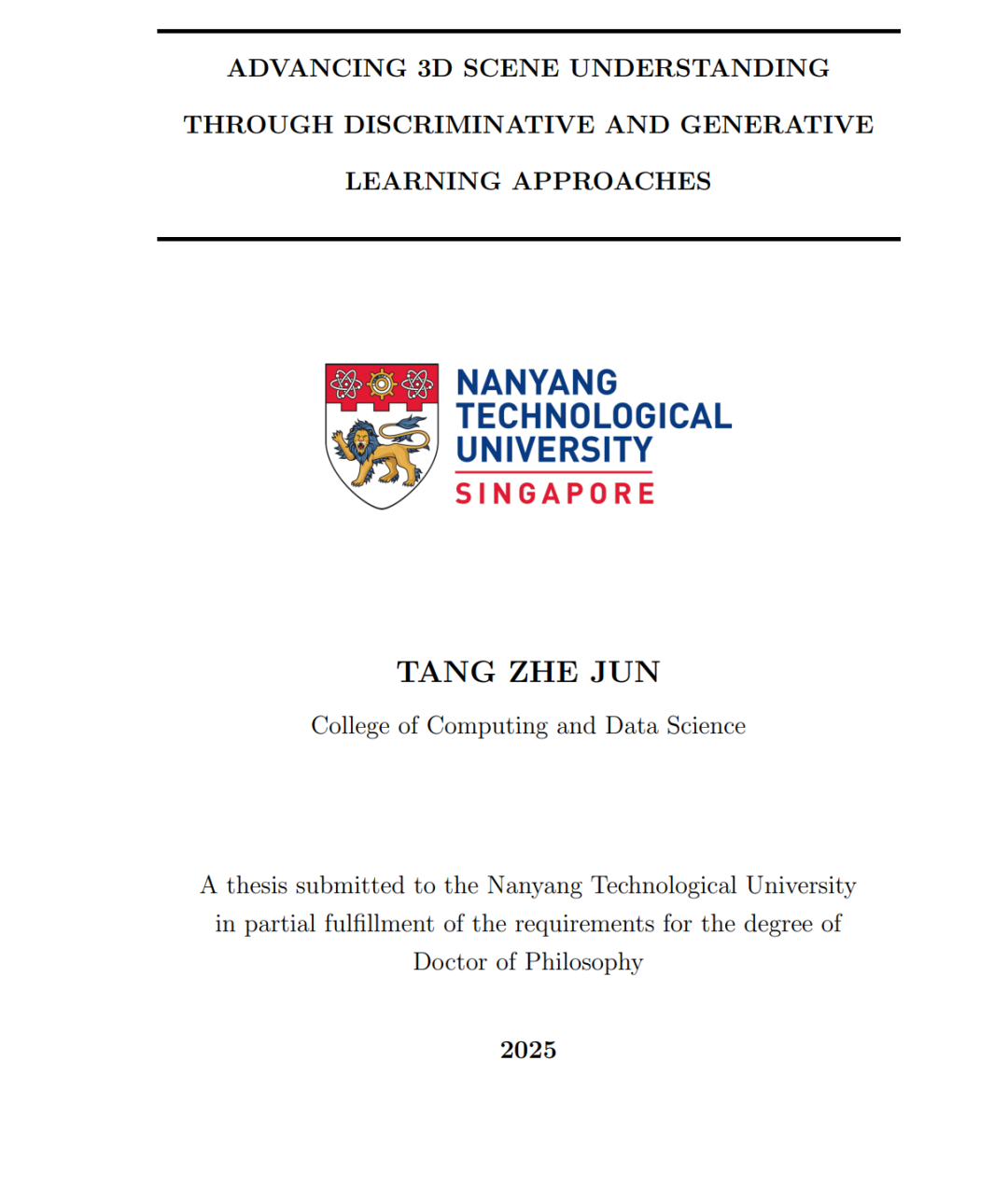 本论文探讨了计算机视觉在赋予计算机通用智能方面的关键作用,重点关注如何开发算法,使机器能够感知并理解其三维环境。研究分为两个部分:判别式学习方法与生成式学习方法,并通过三个核心章节构建三维场景理解的整体框架。