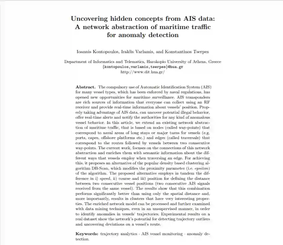 题目: Uncovering hidden concepts from AIS data: A network abstraction of maritime traffic for anomaly detection