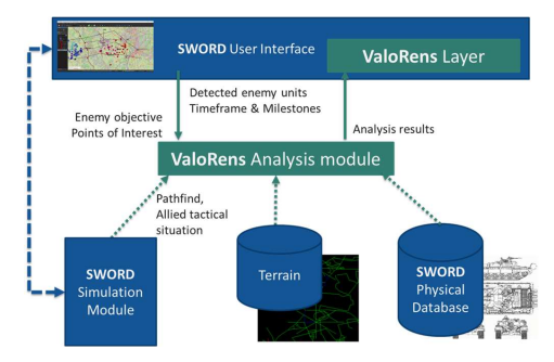地面部队面临的一个主要挑战是,需要对战术态势达到一定程度的理解,以便能够预判敌方未来可能的机动行动。本项目重点在于提升在高度受限的时间窗口内利用更多信息的能力,从而为战术指挥官提供快速决策要素。瓦洛伦斯项目包含于一个始于2021年的作战背景中,该背景由MASA集团和法国陆军总部数字局主导的一项研究奠定。此项工作的目标是开发一种能够基于对敌方目标、机动和能力的探测与分析,来估算其未来位置的工具。我们的项目主要聚焦于营和连级层面,并重度依赖SWORD仿真软件包和人工智能算法。此外,它还生成初始数据并显示用于测试我们解决方案的分析结果。在不久的将来,该项目将作为分析组件集成到“蝎子”(SCORPION)战斗信息系统中。在本文中,首先描述了所考虑的条令基础、假设和用例。接着,我们详细描述了已完成的工作以及初步评估结果。最后,我们概述了所认为的项目逻辑推进步骤,重点放在敌方战斗序列识别和行为分析上。