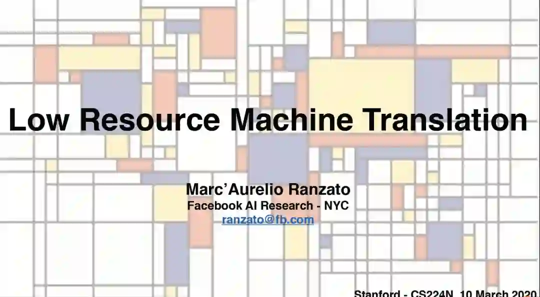 【导读】Facebook AI Research的研究员Marc'Aurelio Ranzato在斯坦福大学经典自然语言处理课程2020年CS224N做了报告《低资源机器翻译》,欢迎查看!
