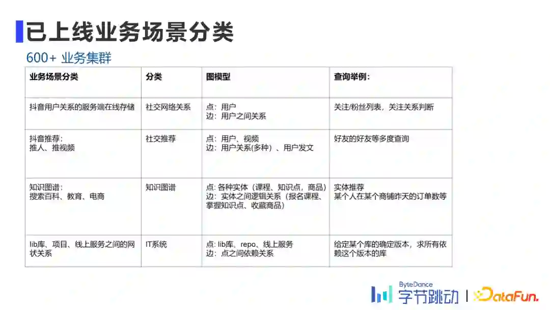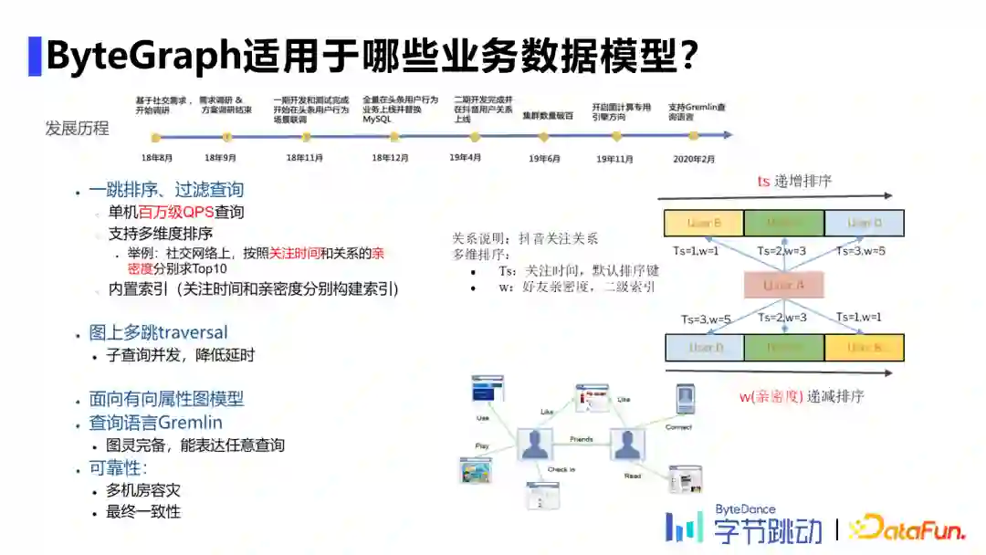 ByteGraph初始立项是在2018年,主要目的是对头条的用户行为及好友关系进行存储来替换Mysql;2019年6月承接对抖音用户关系的数据存储任务,接着在字节内部各种微服务重承接了相关业务。