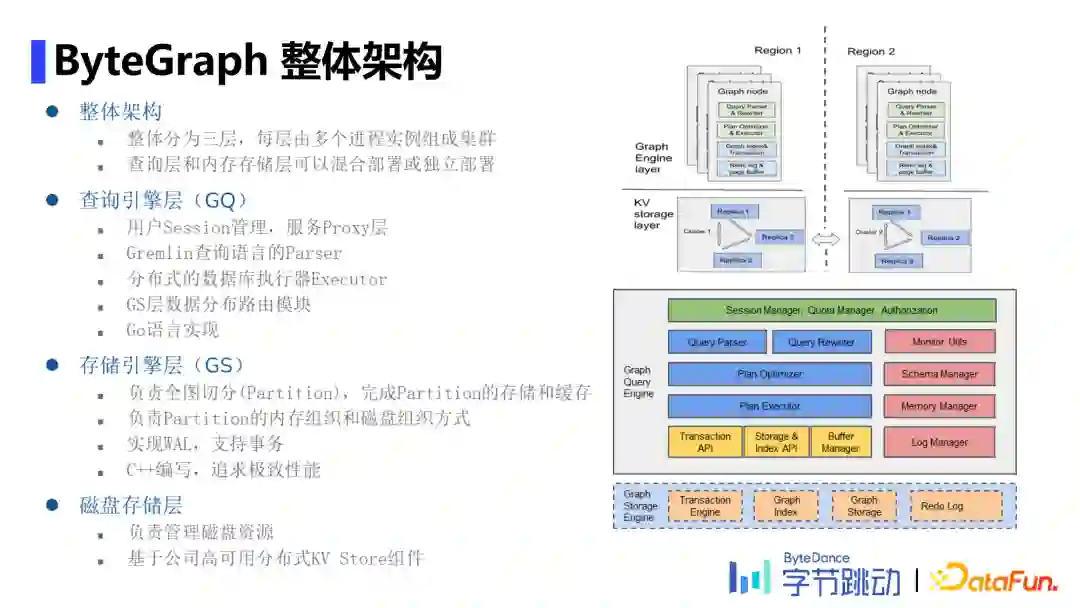 近五年来,图数据库在领域内热度上升趋势非常明显,各个大厂与开源社区都推出了自己的图数据库。用户规模比较大、有一定影响力的查询语言包括Cypher、Apache开源项目的Gremlin等。从集群规模来看,过往有单机数据库,现在大多图数据库都具备分布式能力,这就需要考虑数据的防丢失问题、主副本之间的一致性、多台机器数据上的shard问题。 部分图数据库把图数据库与图计算引擎二者合并在一起,目前字节内部采用的暂时分离的两套系统。