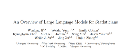 大型语言模型(LLMs)已成为人工智能(AI)领域的变革性工具,在从文本生成到对话再到复杂推理的多样化任务中展现了卓越的能力。随着这些模型的规模和复杂性的增加,一个重要问题随之而来:在LLMs时代,统计学家如何在指导大规模AI模型的设计和部署中发挥作用?从本质上讲,语言模型是为即将出现的单词或单词序列分配概率的模型。具体而言,语言模型f旨在学习一种映射,该映射将一系列标记x[T] = x1, x2, · · · , xT作为输入,并输出下一个标记xT +1的标记词汇表上的概率向量f(x[T])。虽然公式简单,但当应用于大量文本语料库时,这种概率方法使LLMs能够捕捉复杂的模式,包括那些传统上属于语法、语义和逻辑领域的模式。例如,给定诸如“写一个引人入胜的短篇故事”或“让我们一步一步地思考”这样的指令,LLMs可以动态调整其响应以遵循给定的指令,生成与用户意图一致的输出。这种指令跟随能力是广泛训练多样化数据集并结合微调技术以对齐模型输出与用户偏好的结果。尽管这些工作大多受到统计原理和优化理论原理的启发,但在问题公式化和针对LLMs使用的特定架构和数据收集协议的统计程序设计之间仍存在巨大差距。LLM对用户指令的响应示例:创意写作用户:写一个关于一群统计学家去远足的引人入胜的短篇故事。为统计学家提供详细的背景,并描述他们在旅途中遇到的乐趣和挑战。融入丰富的细节,使故事栩栩如生。LLM:标题:大数定律的踪迹这一切始于统计系的一个玩笑。每周三,在每周研讨会结束后,一群教师和研究生会聚集在公共休息室,分享咖啡、抱怨,偶尔还会在餐巾纸上涂写证明草图。一个特别沉闷的冬日下午,Strawderman教授叹了口气,说道:“你们知道吗,我们一直在分析数据中的不确定性,但我们上一次面对真正的不确定性是什么时候?比如,在大自然中?”...LLM对概率问题的响应示例:链式思维提示用户:您是解决高级概率论问题的专家。请仔细逐步解决以下问题,确保解释每一步的计算和假设:当掷两个公平的六面骰子时,至少得到一个6的概率是多少?让我们一步一步地思考。
