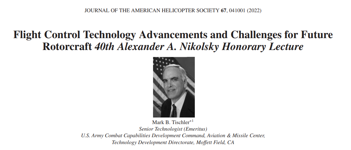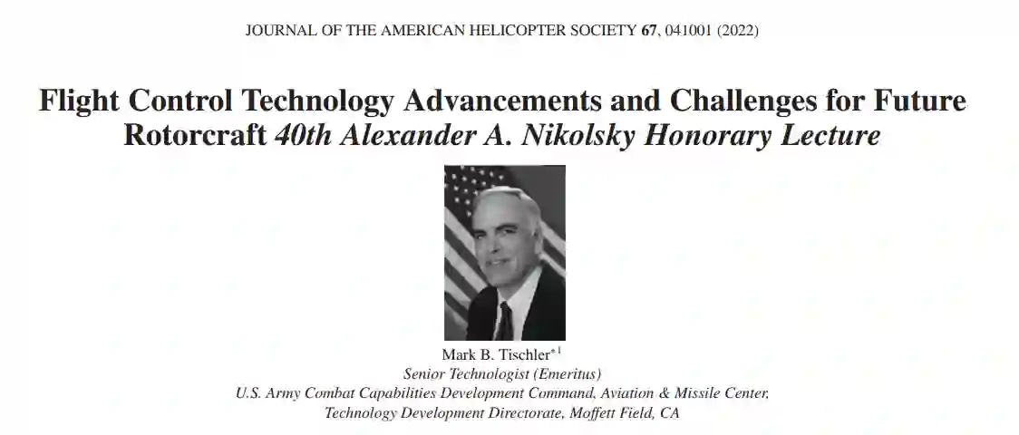 本文强调过去50年的关键飞行控制技术进展,并展示这些进展如何被应用和扩展到新的旋翼机家族:现代高速军用旋翼机、电动垂直起降(eVTOL)城市空中机动性和先进空中机动性飞机。