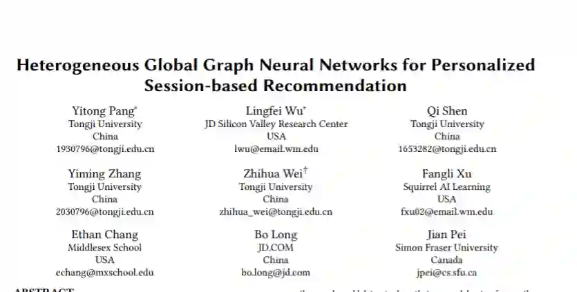 本文是针对会话推荐提出的相关方法,兼顾历史会话信息和会话中商品间的转换模式,提出异构全局图网络HG-GNN,利用所有会话中的商品转换(历史和当前的会话)来推断用户的偏好。全局图包含会话内的item-item关系,user-item关系和全局item共现关系。同时提出一个个性化会话编码器,结合当前会话的一般用户偏好和临时兴趣来生成个性化会话表征进行推荐。本文主要包含两个方面: