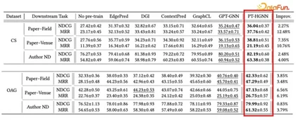 从以上数据可以看到,相比其他预训练模型,PT-HGNN 的性能有着显著提升。