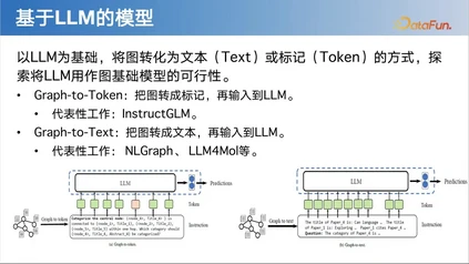 3. 基于 LLM 的模型以 LLM 为基础,将图转化为文本(Text)或标记(Token)的方式,探索将 LLM 用作图基础模型的可行性。