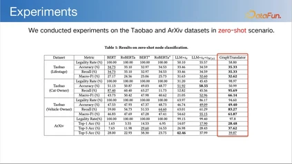 在淘宝和 ArXiv 数据集上进行了零样本场景下的实验,可以看到 GraphTranslor 有着显著的提升。****