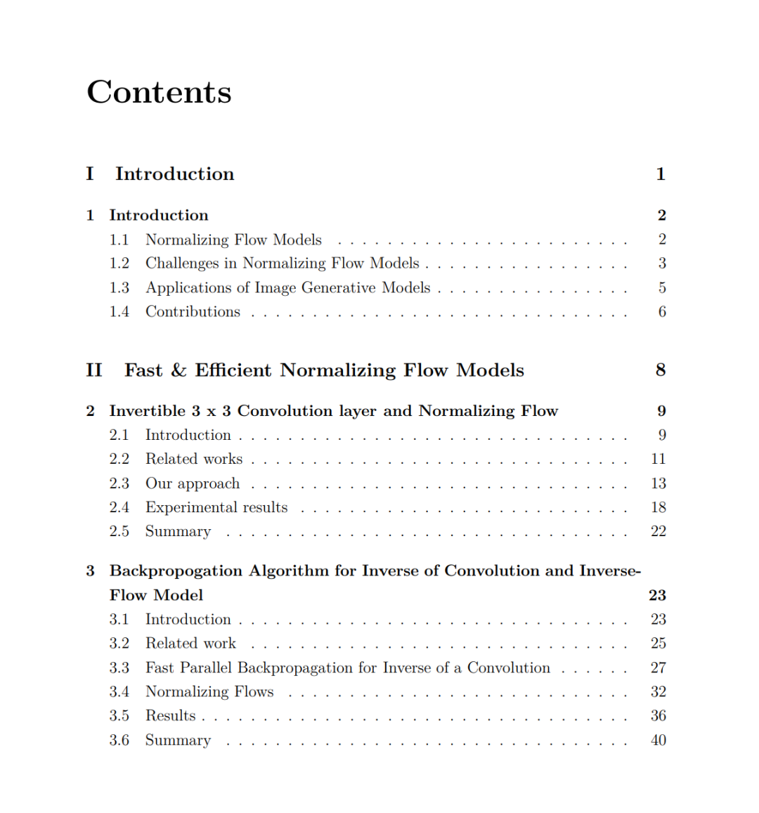 本论文在两个主要方向上作出了创新贡献:一是提升生成模型(尤其是归一化流)的效率,二是将生成模型应用于解决真实世界的计算机视觉问题。第一部分中,我们通过六个关键创新,对归一化流结构进行了重要改进:(1)构建了可逆的 3×3 卷积层,并从数学上给出了可逆性的充要条件;(2)提出了一种更高效的四路耦合(Quad-coupling)层;(3)设计了针对 k×k 卷积层的快速高效并行反演算法;(4)提出了用于卷积逆运算的快速高效反向传播算法;(5)在 Inverse-Flow 中于正向传播阶段使用卷积的逆运算,并采用所提出的反向传播算法进行训练;(6)提出 AffineStableSR,这是一种紧凑高效的超分辨率模型,利用预训练权重与归一化流层,在保持性能的同时显著减少参数量。这些改进在显著提升计算效率的同时,仍然保持了模型的表达能力,相较现有方法具有明显优势。 第二部分展示了生成建模方面的这些进展在多种计算机视觉任务中的实际应用。具体而言,本文工作包括:(1)基于条件 GAN 的农产品自动质量评估系统,用于缓解类别不平衡、数据稀缺与标注困难等问题,并在种子纯度检测任务中取得了较高准确率;(2)一个用于地质制图的无监督框架,利用堆叠自动编码器进行降维,相比传统方法展现出更优的特征提取能力;(3)提出了一种面向自动驾驶数据集的隐私保护方法,基于人脸检测与图像修复(inpainting);(4)进一步利用基于 Stable Diffusion 的图像修复技术,对检测到的人脸和车牌进行替换,从而推动隐私保护技术及其在该领域中的伦理实践;(5)提出了一种用于艺术修复的改进扩散模型,通过统一的微调策略,有效应对多种类型的退化。 本论文在生成模型的理论理解及其实践应用方面均取得了进展,在效率、可扩展性以及多领域的真实应用价值等方面实现了显著提升。 关键词:归一化流,可逆卷积,生成模型,图像生成模型的应用