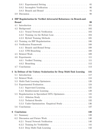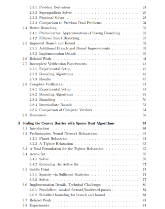 尽管神经网络在各种应用中的高度公开化的成就备受瞩目,但它们尚未在安全关键的应用中得到广泛部署。实际上,关于深度学习系统的鲁棒性、公平性、隐私性和可解释性存在基本的疑虑。在这篇论文中,我们致力于通过提出有关神经网络验证和训练的贡献,提高对深度学习系统的信任。首先,通过为流行的网络松弛设计双重求解器,我们提供了快速且可扩展的神经网络输出边界。具体来说,我们提出了两种求解元素激活函数凸壳的求解器,以及基于ReLU激活与前线性层组合凸壳的两种算法。我们展示了这些方法比现有求解器明显快,并且改善了以往双重算法的速度-精度权衡。为了有效地利用它们进行正式的神经网络验证,我们围绕边界算法设计了一个大规模并行的分枝定界框架。我们的贡献,作为OVAL验证框架的一部分,已经公开发布,它们改善了现有网络验证器的可扩展性,并对更近期的算法开发产生了影响。其次,我们提出了一种直观且经济的算法,通过分枝定界来训练神经网络以进行可验证性。我们的方法被证明可以在验证对小的敌对性扰动的鲁棒性方面达到最先进的性能,同时比之前的算法降低了训练成本。最后,我们进行了全面的实验评估,评估了一次训练网络执行多个任务的专门训练方案,显示它们与简单基线的性能相当。我们对我们的惊人结果提供了部分解释,旨在进一步激发对深度多任务学习理解的研究。
