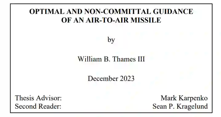 当军事单元需要新的能力时,硬件往往需要 5-7 年以上的时间。虽然新武器的开发可能需要多年时间,但提高现有硬件性能的软件往往可以在更短的时间内以更低的成本开发、测试和投入使用。本论文的目标是通过双管齐下的方法提高空对空(A-A)武器的射程和杀伤力。首先,在 6 自由度 (DOF) 模拟中生成最佳弹道,并将其应用于 A-A 武器的制导。其次,通过混合传统的追击制导和比例导航,开发了非指令性(NCG)概念,以实现致命终局,同时最大限度地减少导弹在目标机动下的机动。NCG 是一种逻辑,可在尽可能长的时间内最大限度地减少机动以应对目标机动。这增加了终局时的可用能量,并最大限度地减少了过冲的机会。通过模拟分析了短程、中程和远程空气呼吸导弹的这两个概念。使用 6 DOF 仿真对轨迹解决方案进行了评估,以确保其可靠性、可重复性和最优性。结果表明,与采用恒定倾角的比例导航相比,采用优化倾角曲线的拟议 NCG 方案可增加武器射程和武器对机动目标的杀伤力。