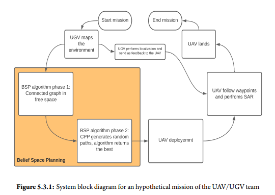 显然,机器人在未知环境中的定位对于机器人需要执行的任何任务或成就都至关重要。从决策的角度来看,在置信空间中规划有助于选择能收集更多信息的路径,但由于传感器模型误差、噪声测量以及不完美的无人机运动学模型,它仍然受到一定程度的不确定性影响。因此,本研究聚焦于以下目标:• 开发一个由无人地面车辆和无人机组成的全自主系统用于地下勘探 • 开发一个模拟器,用于在部署到真实系统之前进行路径规划和定位测试 • 开发一种路径规划算法,传播无人机的置信状态,将不确定性纳入决策过程 • 开发一种基于机器学习的规划算法,能够预测环境条件如何影响传感器测量