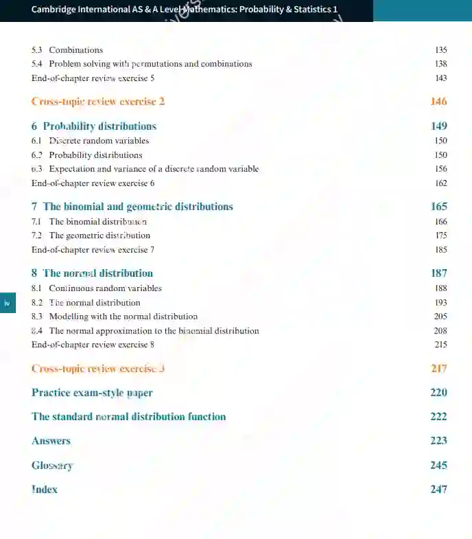 剑桥国际AS和A水平数学:概率与统计1,与大纲的相应单元相匹配,逻辑清晰,逐步推进。它包含了诸如数据、变量、概率、排列组合、二项式和几何分布以及正态分布等主题的材料。这本课本包含了多种特性,包括学生回顾先前知识的复习部分、详细的解释和示例、章节末和跨主题的复习练习以及旨在鼓励对数学概念进行深入思考的“探索”任务。课本问题的答案位于书的末尾。清晰的解释和示例引导学生进入练习,使他们熟悉概念,并将其应用于回答问题。 专为2020年起的考试大纲编写,让教师和学生对大纲内容的全面覆盖充满信心。 清晰的图表有助于视觉上学习概念。 “探索”功能提供了进一步调查的机会,鼓励对关键数学概念进行讨论和反思。 来自地下数学的更多资源的网络链接,促进对概念的深入理解。 每章结尾和跨主题修订练习中的考试样式和往年真题,提供了评估的机会。